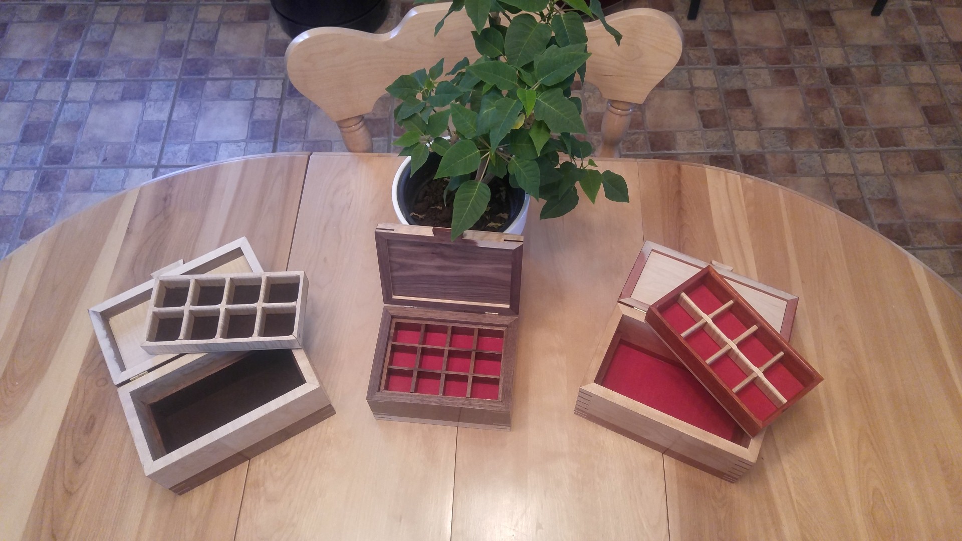 Boîtes à bijoux, souvenirs, coffrets. Sans trop savoir pourquoi, il m'est impossible de cesser de faire des boîtes. Ces projets sont autrement plus complexes qu'initialement prévus.