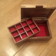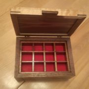 L’étage du haut est comprend 12 compartiments pour entreposer des boucles d’oreilles ou bagues.