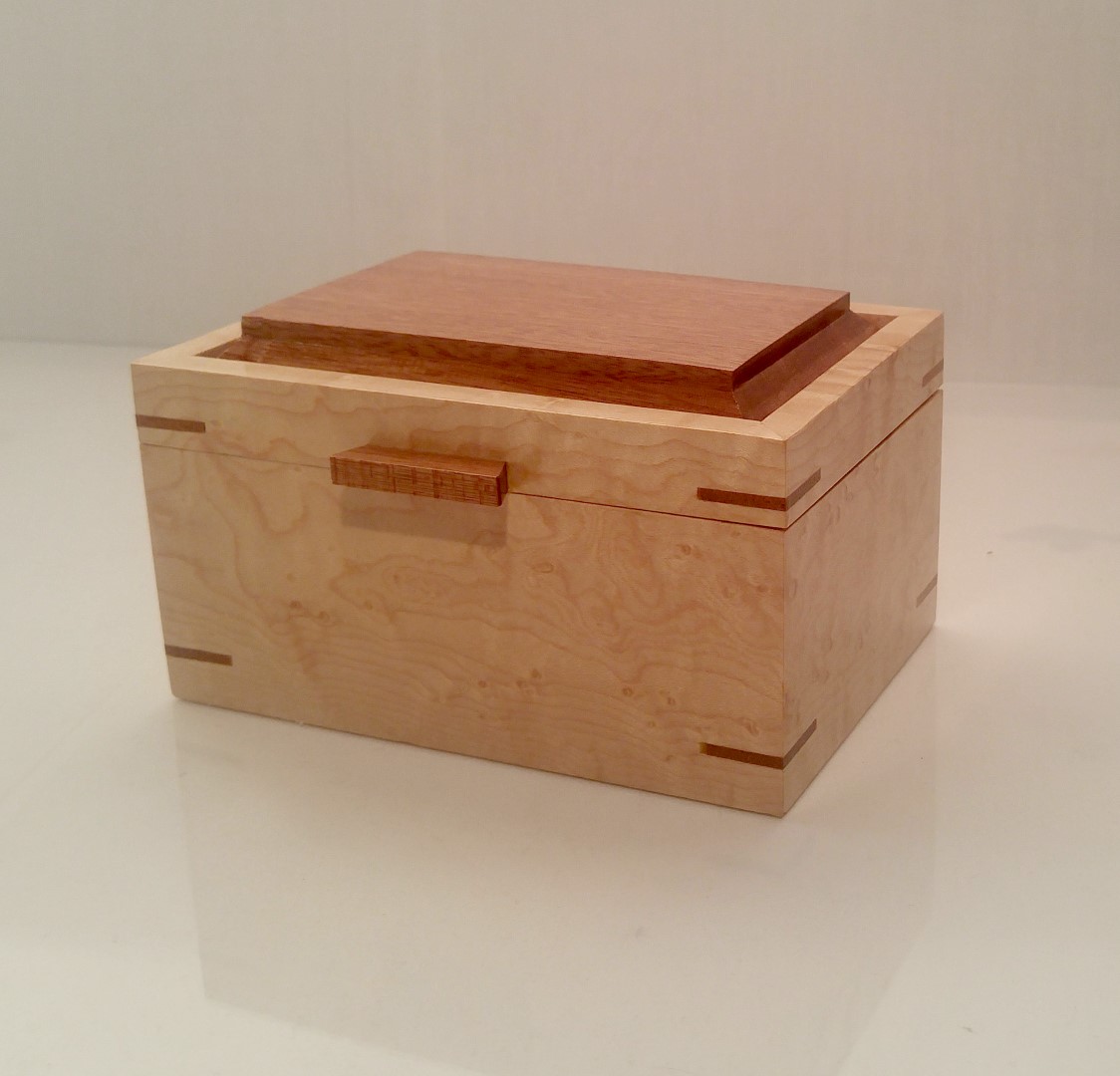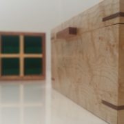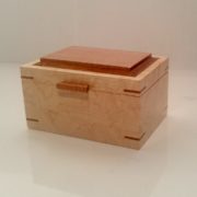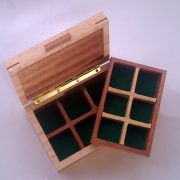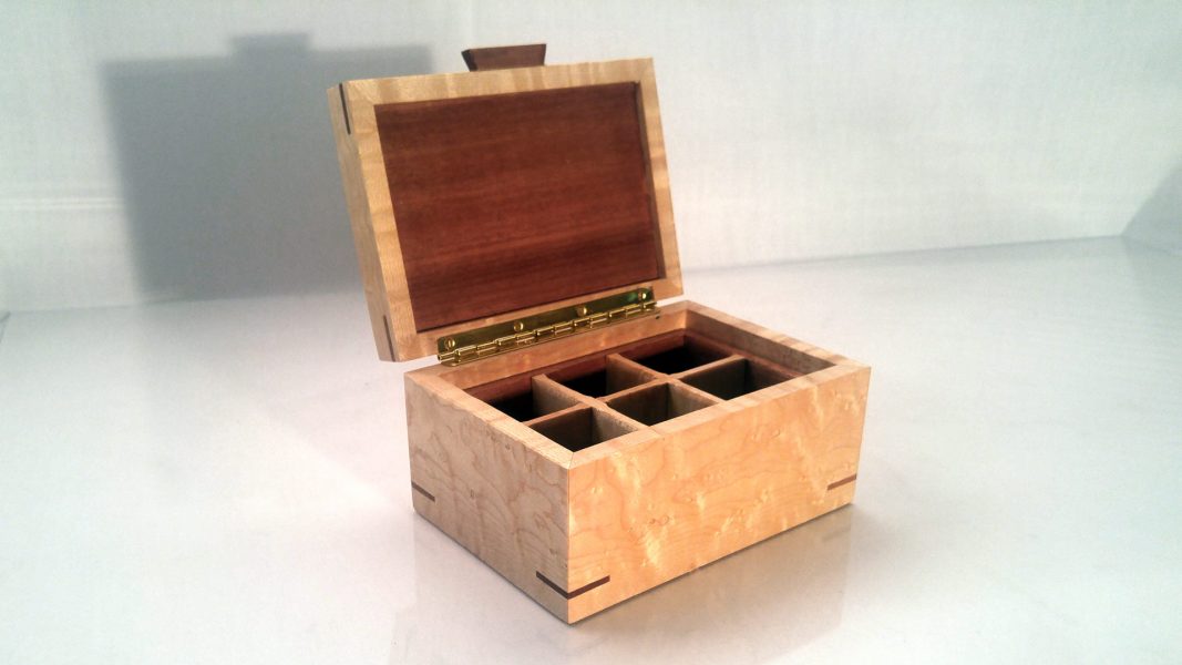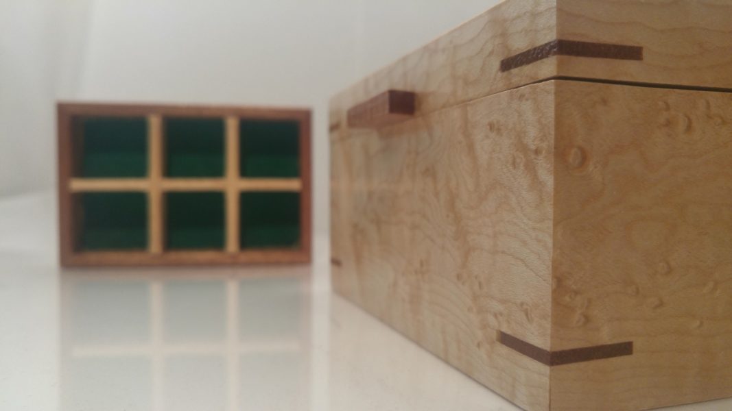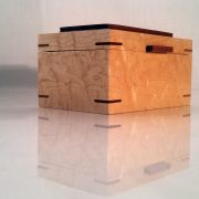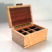 Les essences de bois sont du sapelé (bois africain utilisé entre autres dans la fabrication de ukulélé) et de l’érable ondé, exceptionnellement figuré. La structure est renforcée avec des clés en sapelé insérées à chaque joint pour que la solidité perdure pendant de nombreuses années. Fnition extérieure au shellac de plus de 5 couches. Le plateau et le fond de la boîte sont couverts de fibre à texture de velours.