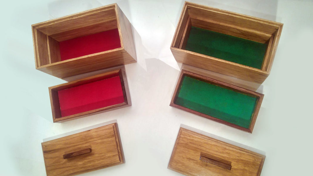 Ces deux boîtes quasi-identiques sont vendues en paire. Mettant en vedette deux espèces de noyer : le noyer noir et le noyer cendré.