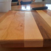Selon l’utilisation, au fil du temps, vous verrez apparaître quantités de marques de couteaux et parfois même quelques taches. Pour y remédier, il est possible de poncer (sabler) votre planche à découper, idéalement à l’aide d’une ponceuse orbitale au grain de 80-120-180. Appliquez un traitement d’huile minérale ou d’huile pour plan de travail. Et voilà, votre planche est comme neuve. Vous pouvez répéter ce processus au besoin, presque à l’infini.