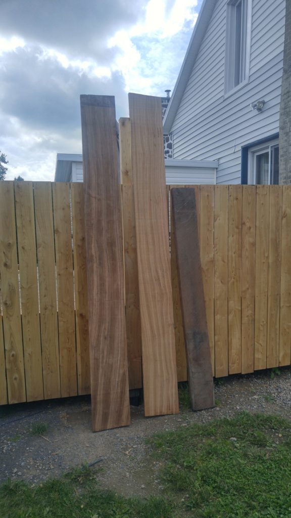 J’ai mis la main sur des planches de 4/4 X 9′ X 13″ coupé en quartier, très droites.
