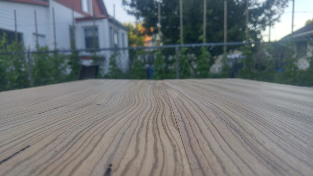 Récemment lors d’un projet de table basse, j’ai eu l’occasion de travailler avec un bois exotique exceptionnel. Le zebrano, comme son nom l’indique, est un bois avec un motif zébré quand il est coupé en quartier.